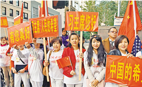 ■美西時間22日上午,中國國家主席習近平抵達西雅圖,開始訪美行程,受到當地僑胞熱烈歡迎。 中新社