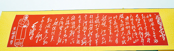 ■李福愛剪紙作品:毛澤東詩詞《沁園春•雪》。 記者張仕珍 攝