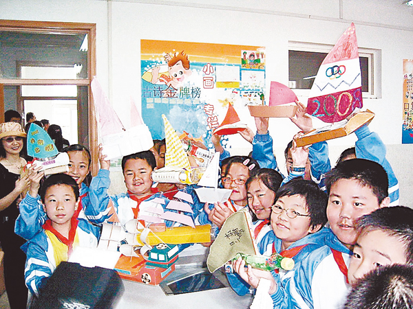 ■青島帆船進校園。 本報青島傳真