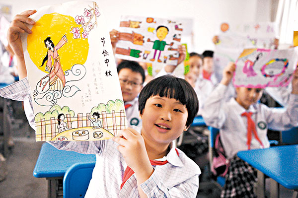 臨近中秋佳節,安徽省合肥市蜀山區文博苑社區聯合翠庭園小學的學生們開展「倡節儉 度中秋」主題活動,學生們通過自己的圖畫倡導適度節儉地度過一個美好的中秋節。 ■中新社