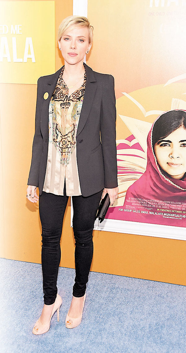 以性感見稱的「黑寡婦」史嘉莉祖安遜(Scarlett Johansson)前日以密實打扮現身紐約,出席電影《馬拉拉:改變世界的力量》(He Named Me Malala)首映禮,同場還有地產大亨特朗普(Donald Trump)的女兒Ivanka Trump及美國女歌手Alicia Keys等,而馬拉拉則攜父親及一眾有份參與電影的台前及幕後工作人員一同現身,馬拉拉更攬實父親的手臂,盡晒父女情。