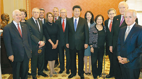 ■習近平在華盛頓國會山集體會見美國國會參眾兩院領導人。新華社