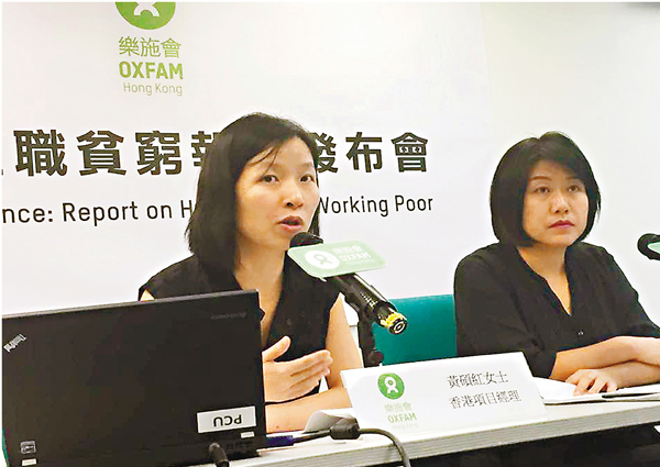 香港文匯報訊(記者 陳敏婷)扶貧高峰會將於下月10日舉行,樂施會昨日指,香港過去5年的在職貧窮家庭數目升幅逾10%至近19萬戶,當中逾10.1萬戶去年的月入低於綜援戶;而且貧富懸殊嚴重,最富裕與最貧窮的10%住戶去年月入中位數相差多達19倍。樂施會認為商界有責任與政府共同承擔貧窮問題,建議政府將最低工資提升至時薪35元或以上,並帶頭取消強積金對沖機制。