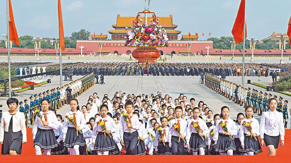 ■ 9月30日,烈士紀念日向人民英雄敬獻花籃儀式在北京天安門廣場隆重舉行。 新華社