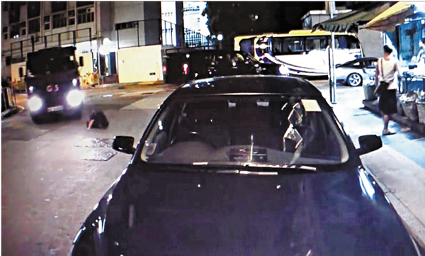 香港文匯報訊(記者 杜法祖)長沙灣福華街前晚發生解款車撞傷途人意外。一輛解款車在轉彎時,將一名正過馬路持雙程證來港老婦撞至重傷。解款車司機事後因涉嫌「危駕」被捕。意外過程被附近汽車上所裝的「車CAM」拍下,有人將片段放上網,只見解款車當時車速不慢,老婦瞥見其駛至時已避無可避,嚇得大叫「嘩!嘩!」兩聲,便被撞至彈開倒地。