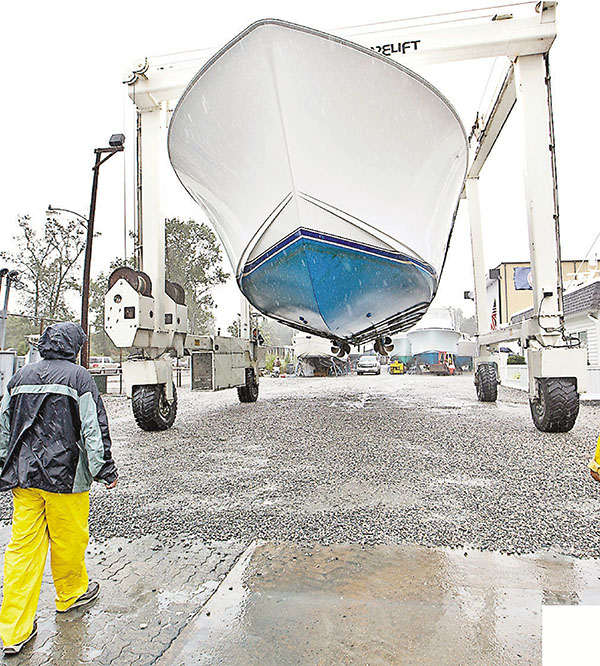 ■弗吉尼亞州有人將船移離水面,免被颶風吹走。美聯社