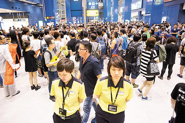 ■港鐵明顯加派職員到車站大堂維持秩序,部分職員被粗言穢語指罵。 梁祖彝 攝