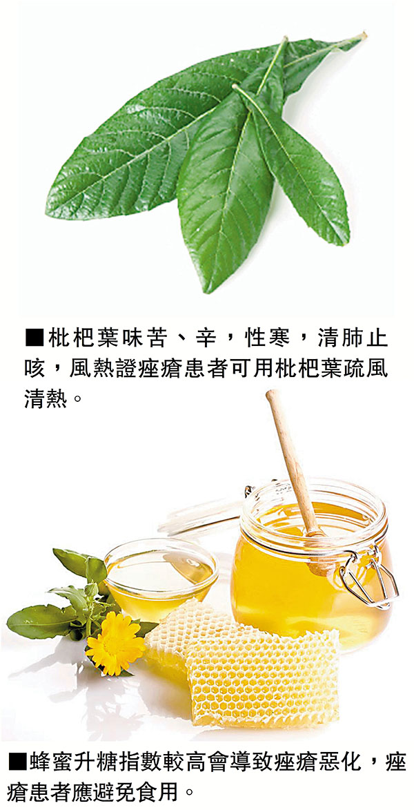 中醫一般將痤瘡分為風熱證、濕熱證和痰瘀證三類。風熱證的痤瘡皮疹色紅較小,一般以白頭粉刺、黑頭粉刺為主,自體感覺癢痛皆有,而患者舌苔淡黃而薄。風熱證痤瘡需疏風清熱,臨床多用枇杷葉、連翹、薄荷等清輕辛涼的藥物。濕熱型痤瘡皮疹紅腫熱痛,其癢不甚,或伴有膿皰,其人口氣較大,時感口苦,容易便秘尿黃。濕熱型痤瘡需清熱利濕解毒,常用茵陳、黃芩、薏苡仁等藥物。痰瘀型痤瘡多見到囊腫結節,其皮疹顏色較暗,直徑較大,患者時有胃口不佳,頭身重墜之感,此型痤瘡常需用淮山、白朮健脾祛濕,用丹蔘、紅花活血化瘀,有時需加浙貝、昆布化痰散結。