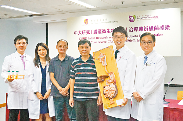 中大醫學院腸胃科團隊於本年初,安排7個嚴重感染的病人接受「腸道微生物移植」治療,當中有6人於10周內成功治癒病菌,並有一名病人接受第二次的移植後也康復,治癒率為八成五。