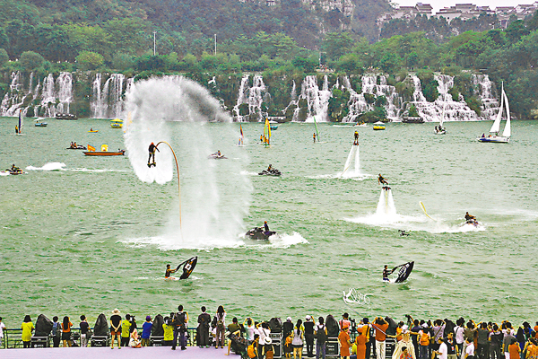 香港文匯報訊(記者 孫娟、曾萍、唐琳 廣西報道)2015年柳州國際水上狂歡節近日在廣西柳州市柳江河畔開幕,數十艘水上帆船、摩托艇進行全城巡遊。