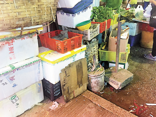 ■街市的一些邊緣位置的食物渣滓易被忽略。 陳敏婷 攝