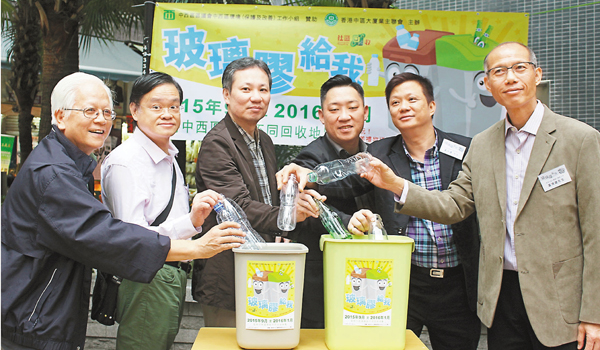 中區大廈業主聯會主辦一連30天的「玻璃膠給我」環保回收宣傳活動,以向區內市民推廣社區滅廢行動,鼓吹不浪費、多再用及精明回收,昨日於上環文化廣場舉行啟動禮。長春社理事林乾禮希望,藉活動向市民提倡乾淨回收的環保意識。 ■文、圖:趙虹
