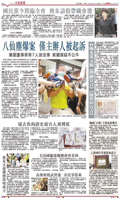香港文匯報訊 台灣士林地檢署對新北市八仙塵爆案昨日偵查結束,起訴派對主辦方玩色創意負責人呂忠吉,並請法官從重量刑。事發地八仙樂園董事長陳柏廷等7名被告則獲不起訴處分。多名傷患不滿意偵查結果,將會申請再議。