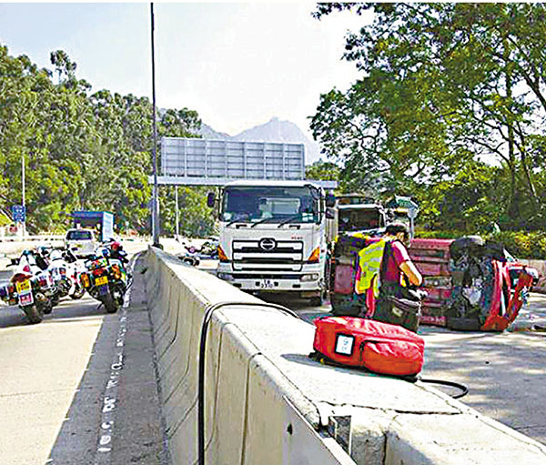 意外中3名傷者分別為私家車35歲姓周女子,她報稱手及背受傷、其餘兩人為兩輛泥頭車的33歲姓李、34歲姓蕭司機,各報稱手部受傷,3人送往明愛醫院治理後無大礙。