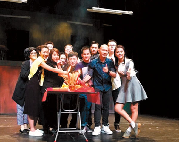 ■蔚雨芯(右)為舞台劇進行拜神儀式。
