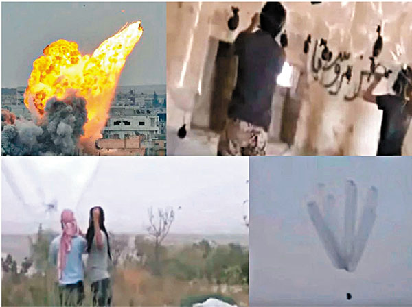 極端組織「伊拉克和黎凡特伊斯蘭國」(ISIL)周三上載片段,顯示敘利亞北部城市伊德利卜的武裝分子,將炸藥綁在充氣安全套上,放上半空後引爆,發出巨響。報道認為,片段反映ISIL已無計可施,不惜用盡一切方法向上月開始空襲敘利亞的俄軍戰機反擊。
