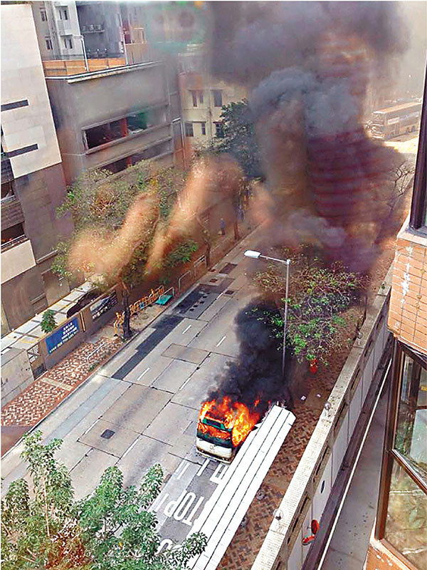 ■專線小巴燒通頂,煙火沖上半空。網上圖片