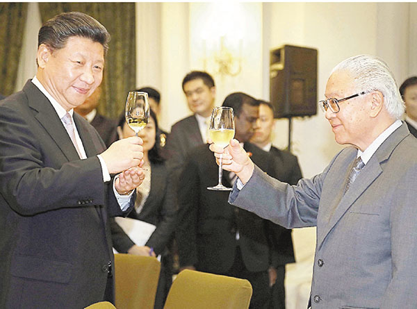 國家主席習近平訪問新加坡,新加坡總統陳慶炎特設國宴款待。席間,演奏團表演不同風格樂曲,既有南洋曲風,新加坡愛國歌曲,也有中國民族音樂。演奏的中國歌曲包括《我愛你,塞北的雪》、《沂蒙山小調》、《誰不說俺家鄉好》、《彩雲追月》、《茉莉花》。 ■環球網