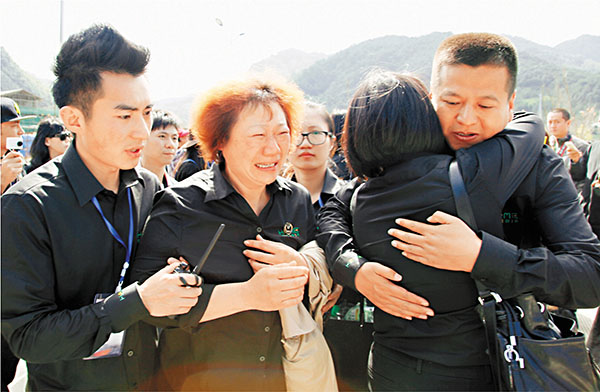 ■遠征軍後人與從緬甸歸來的工作人員擁抱在一起。