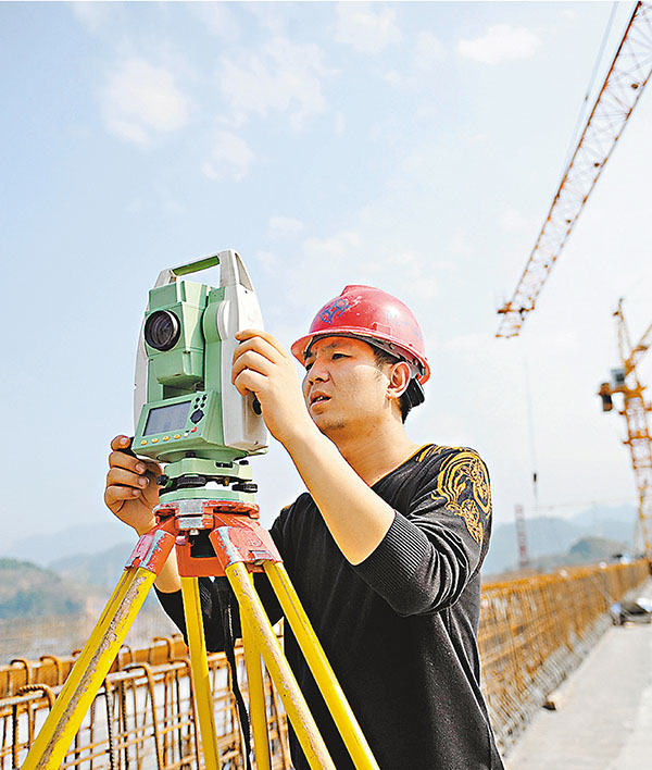 ■內地高速公路建設年底達12.3萬公里。圖為貴州沿德高速預計年底全線通車,昨日中交一公局的技術人員在沿德高速公路烏江特大橋上測量。新華社