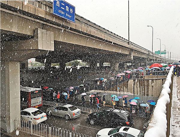 ■北京2015年首場大雪致交通堵塞問題嚴重。 記者江鑫嫻 攝