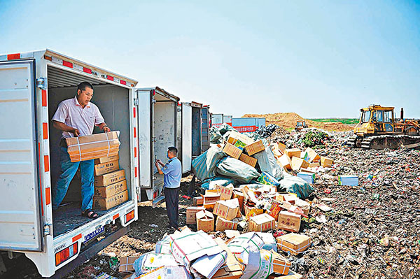 ■遼寧力爭建成食品安全放心省份。圖為公安銷毀問題食品現場。資料圖片