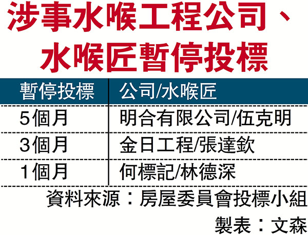 涉事水喉工程公司、水喉匠暫停投標 (圖)