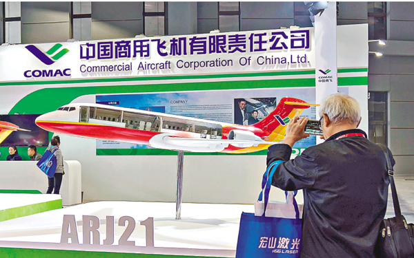 ■本月底或下月初,ARJ21飛機將交付成都航空公司。圖為展會上的ARJ21飛機模型。資料圖片
