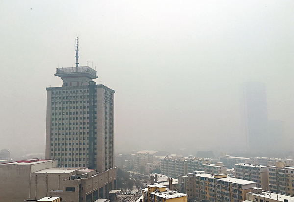 ■昨日,東北多個城市空氣重污染。圖為在霧霾籠罩下的吉林長春城區建築群。 新華社
