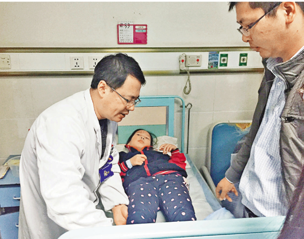 ■醫生正在給受傷學生做檢查。 記者趙勇 攝