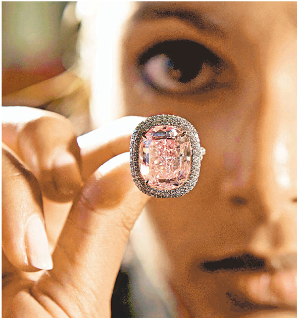 佳士得拍賣行本周二在瑞士日內瓦的拍賣會上,一名本港富豪以2,872萬瑞士法郎(約2.2億港元)投得一顆粉紅巨鑽,該鑽石重16.08卡,呈枕形,鑽石四周有兩排白鑽作裝飾。
