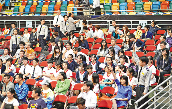 伊利沙伯體育館昨日公開拍賣年宵市場餘下的145個乾貨攤位。場內不乏身穿校服的學生及大專生參與競投。