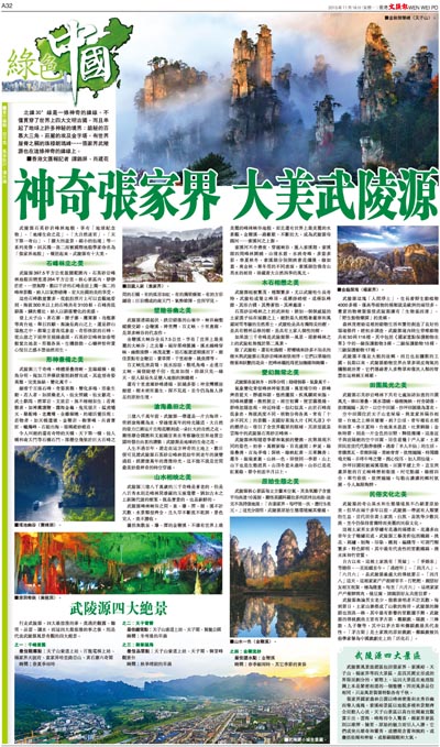 北緯30°線是一條神奇的緯線,不僅貫穿了世界上四大文明古國,而且串起了地球上許多神秘的境界:詭秘的百慕大三角,莊嚴的埃及金字塔,有世界屋脊之稱的珠穆朗瑪峰......張家界武陵源也在這條神奇的緯線上。■香港文匯報記者 譚錦屏、肖建花
