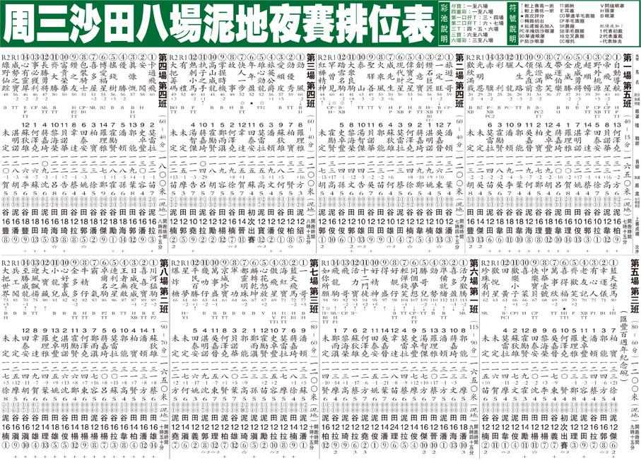 周三沙田八場泥地夜賽排位表