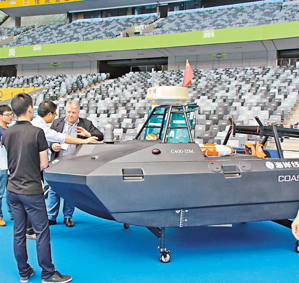 ■國外客戶了解無人船「海岸線」。 記者何花 攝