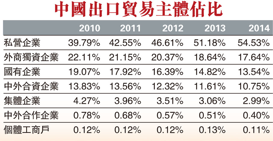 中國出口貿易主體佔比 (2015-11-19) (圖)