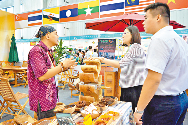 ■東盟是中國「一帶一路」戰略的重要夥伴。圖為廣西舉行的中國-東盟博覽會輕工展,融入了「一帶一路」元素。 資料圖片