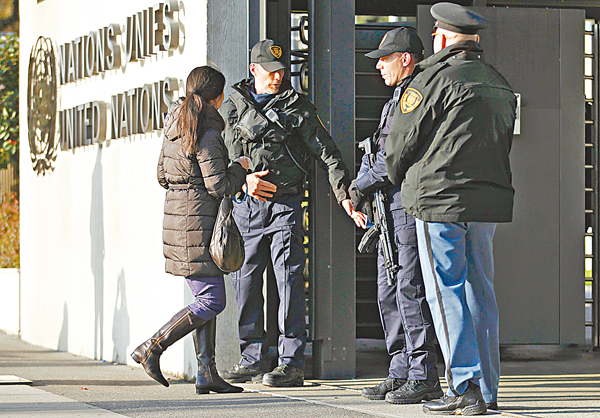■聯合國總部警衛配備MP5衝鋒槍,被形容極不尋常。 路透社