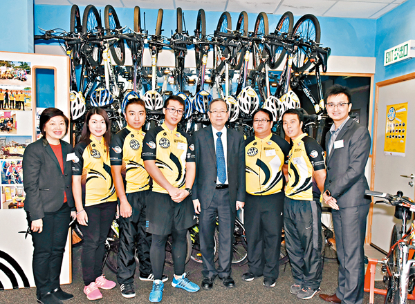 ■黎棟國(左五)聽取「改變之輪」單車導賞員訓練計劃介紹。