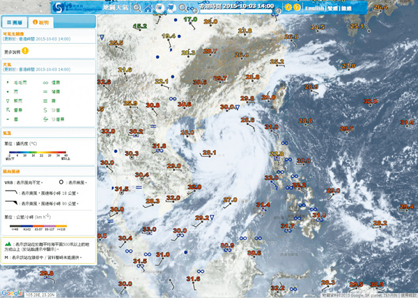 香港文匯報訊(記者 聶曉輝)南中國海現時的天氣及海面狀況如何?瓦努阿圖最近有沒有地震發生?南極洲今天的溫度是多少?香港天文台日前推出的全新網站「地圖天氣」(maps.weather.gov.hk/gis-portal/web),巿民可以從該網站找到以上問題的答案。「地圖天氣」提供綜合全球天氣及地球物理資訊於一個地理信息系統平台上,讓市民可按自己的需要查閱。