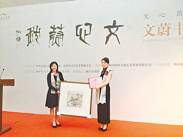 香港文匯報訊(記者 高施倩 浙江報道)「文心蔚然--文蔚書畫藝術展」繼北京、天津、深圳、無錫展之後,早前在杭州開展,展出文蔚書畫作品八十餘件,包括寫意人物、寫意花鳥、山水及書法作品。作者用各種不同的形式探索藝術風格,表達個人情感和時代精神,體現了她「文心極致、蔚然大觀」的追求。展覽不在於文蔚對各種畫面形體的呈現,而意在展示創作者一以貫之的藝術思維和真實的繪畫狀態。展覽所呈現的並不僅是文蔚的書畫作品,而是意在通過她的山水、仕女、書法等形式,更多地展示當代優秀的青年藝術家的生活狀態與創作思維。