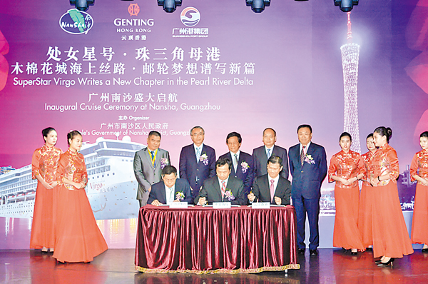 麗星郵輪的旗艦郵輪「處女星號」近年以香港為母港,但明年1月3日開始,這架「處女星號」完成南半球之旅後,正式移至廣州南沙港母港,展開其母港航線。上個月,雲頂香港便舉行了廣州南沙首航特別活動,在活動上,與當地政府簽署兩份共同開發當地郵輪碼頭的合作意向書,致力將珠三角發展成為世界級郵輪旅遊目的地。
