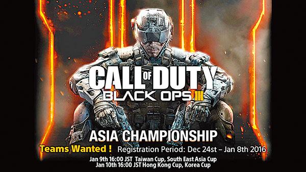 ¦p·Q¦b®a¤¤«×¹L°£¤i¡A§A¤£§«¥i¥´¾÷¬D¾Ô¡CSony Computer Entertainment Japan Asia ESL«Å§G¡uCall of Duty¨È¬w¬×¡v§Y±N¶}¥´¡A¨È¬wªº¡mCall of Duty¡n¯»µ·Ì¡A§ìºò¾÷·|¡A¦]¬°·sªº¤@¦~n¥HÅFÅF¯P¯Pªº¤è¦¡®i¶}¡C½u¤W¸ê®æÁɱN©ó©ú¦~1¤ë¥÷ªº¤W¥b¤ë¡A¦b»´ä¡B¥xÆW¡BÁú°ê¤ÎªF«n¨Èµ¥°ê®a¤Î¦a°Ï¶i¦æ¡C³Ì«á¡A¥|Ӱϰ쪺«ax¶¤¥î«h·|¥Nªí¦U¦Ûªº°Ï°ì¡A¦b¥xÆW°Ñ¥[©ó2016¥x¥_°ê»Ú¹qª±®iÁ|¦æªº¡uCall of Duty¨È¬w¬×Á`¨MÁÉ¡v¡C
