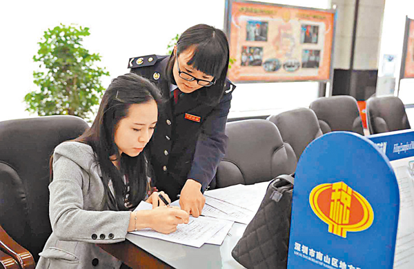 ■深圳市地稅局工作人員認真輔導納稅人辦稅 吳青芳 攝