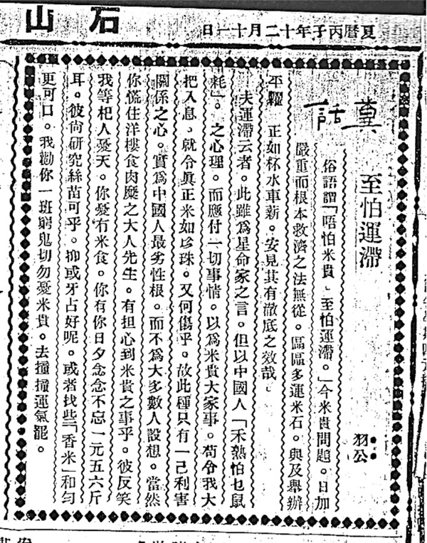 怪論始於何時?誰是始祖?根據現存的資料,可以追溯至上世紀三十年代的《先導》隔日刊,到了四十年代中期,才在《新生晚報》被三蘇發揚光大起來。其實,《先導》除任護花以金牙二大寫怪論外,還有位以寫艷情小說知名的林瀋。他以依挹為筆名,以「尖事座談會」為欄名,發表他的奇思妙論。依挹是知名報人,本名林國雄,後改林覺紅,國學根基甚厚,擅文言,他的「尖事座談會」專欄,則以粵語為主,間雜文言、白話,筆調輕鬆,幽默諷世。除上述三人外,為人忽略的是,在三十年代還有一位粵港派作家,也曾寫過怪論,他就是鄧羽公,他在香港辦的《石山》報,以羽公筆名撰「糞話」一欄。所謂「糞話」,即是「臭話」、不中聽的話。鄧羽公每看破世情,潑糞警醒當局與世人,戲謔筆法之中,滿含辛酸與憤世嫉俗。所用三及第,文言則較少,但通暢簡明,備受讀者歡迎。