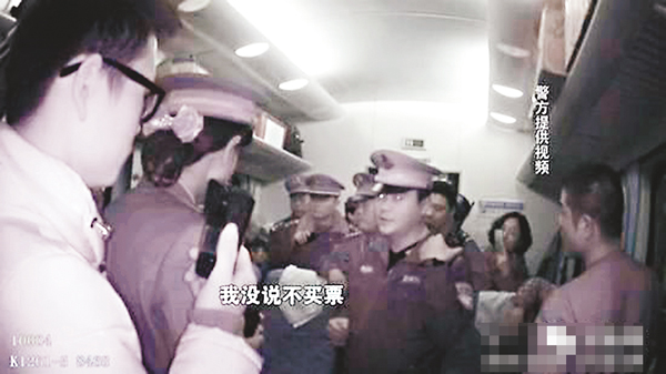 ■鐵路民警登車與霸王乘客理論。 網上圖片