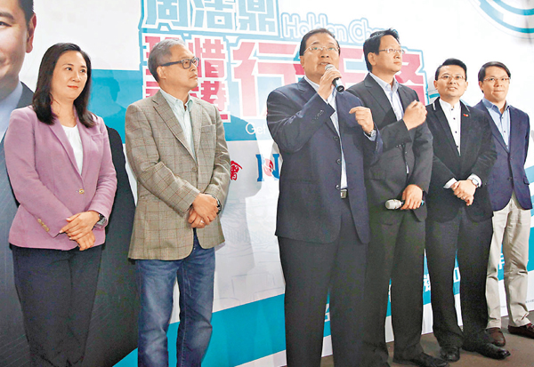香港文匯報訊(記者 陳庭佳)民建聯副主席周浩鼎昨日獲多名重量級黨友陪同報名參選,他們指出香港目前十分混亂,立法會拉布嚴重,解決不了問題,需要一個有能力、有理想、真正珍惜香港的議員,也需要選民表態,支持香港行正路,重回正軌。