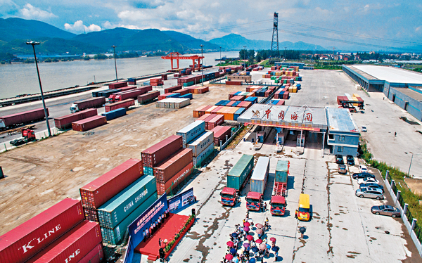 ■跨境電商出口貨物早前在浙江富陽東洲碼頭跨境電子商務綜合試驗區物流港裝貨上船。 資料圖片