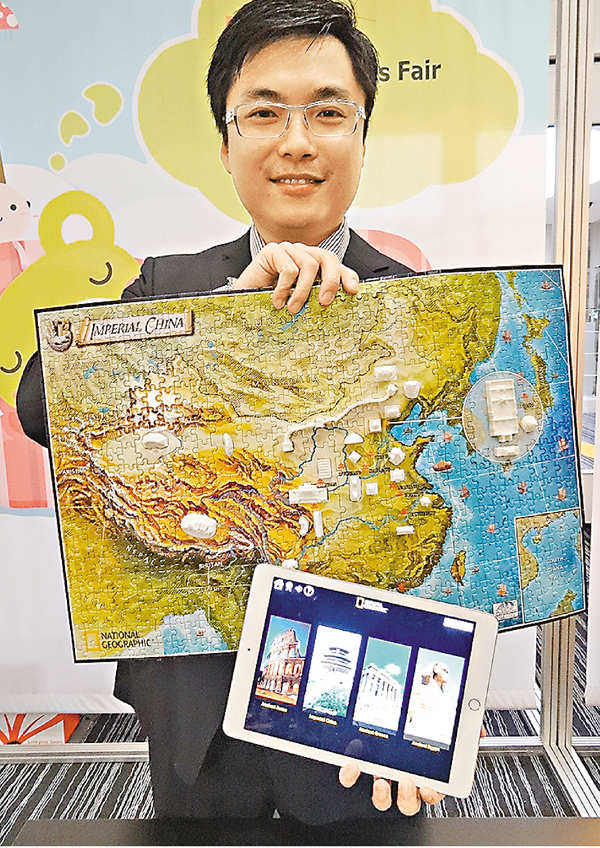 美國公司「4D CITY SCAPE」與國家地理雜誌合作,推出全球首個配合手機軟件的多層立體拼圖,讓玩家了解四個古代文明,分為中國、希臘、羅馬及埃及的歷史及變遷,再透過問答環節,讓玩家透過遊戲學習。 ■香港文匯報記者 翁麗娜