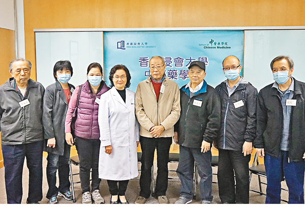 ■患膽管癌的戴先生(右三)接受3年中醫治療後,其腫瘤沒有擴大及擴散,現時病情穩定。 鄺慧敏 攝